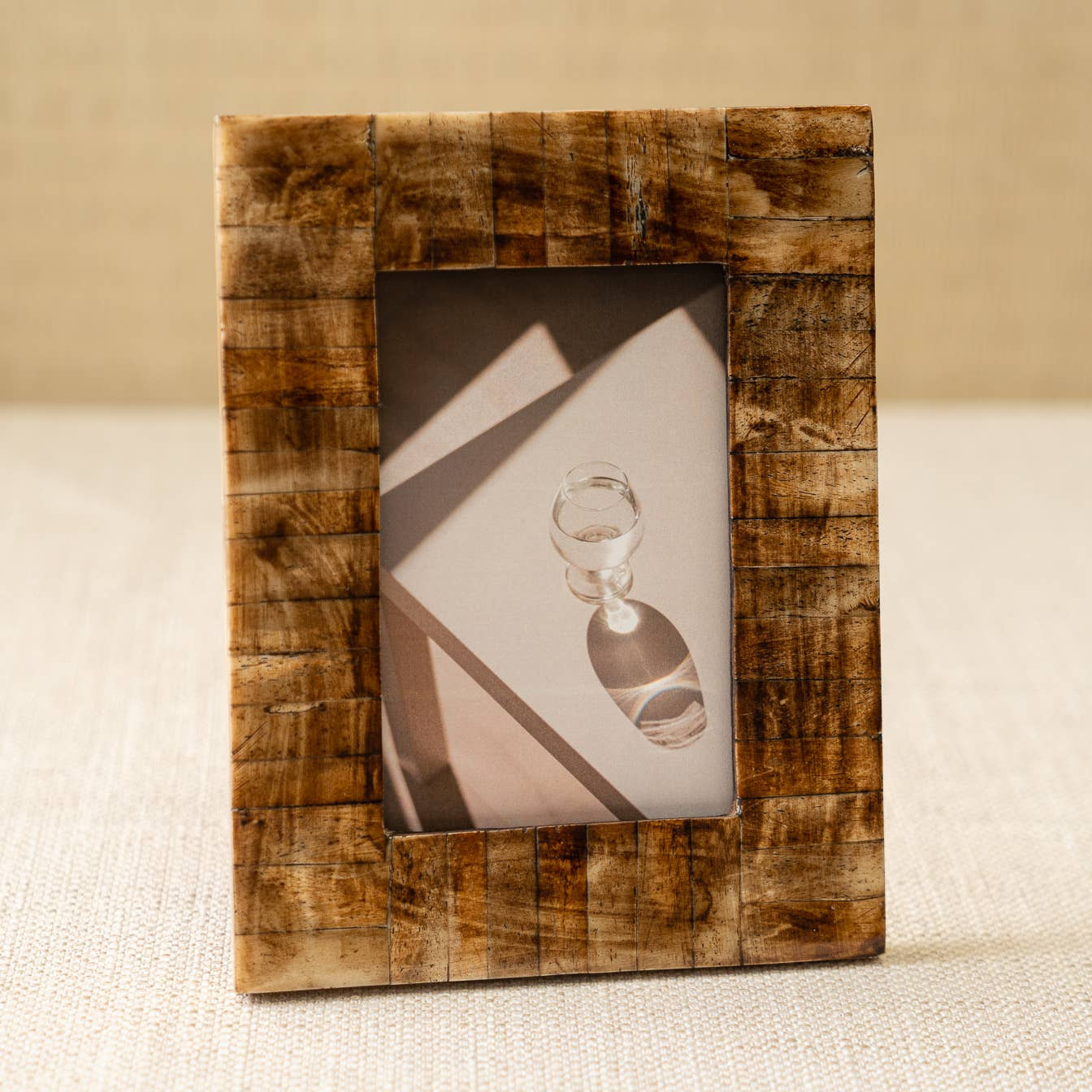 Add a touch of vintage elegance to your memories with this Antique Bone Inlay Photo Frame. Expertly handcrafted, the frame features ethically sourced bone pieces meticulously cut and arranged into an intricate inlay design that reflects timeless artistry. The antique finish lends a warm, aged patina, enhancing the natural texture and soft tones of the bone. Perfect for displaying cherished photographs or artwork, this frame brings a sense of history, craftsmanship, and sophistication to any space—making it a beautiful accent for classic interiors or a thoughtful gift for someone special.