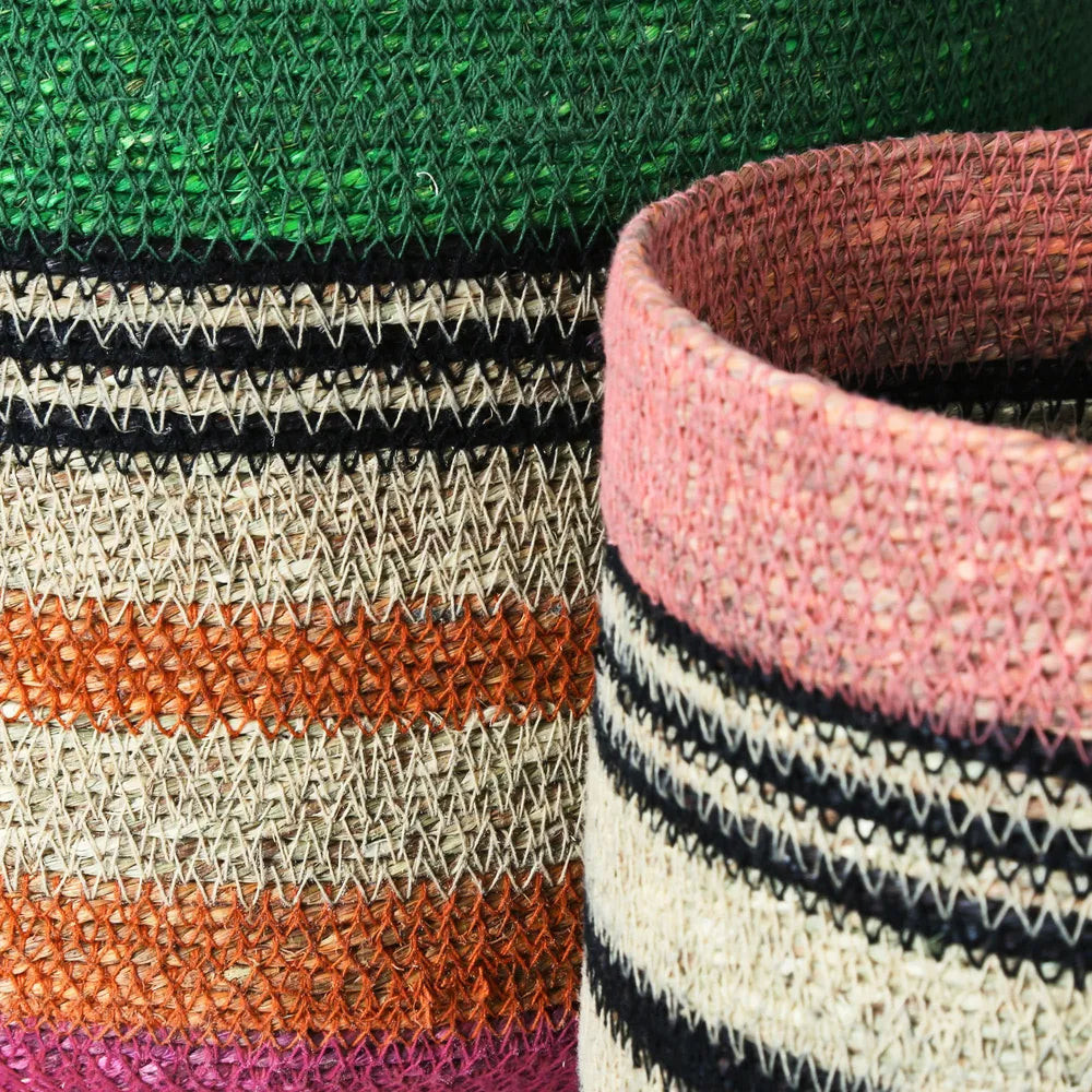 The Argent Multi Woven Basket is a perfect blend of craftsmanship and functionality. Handwoven with precision, it showcases a beautiful interplay of natural and dyed fibers, creating a distinctive multi-tonal texture that adds depth and character to any space.