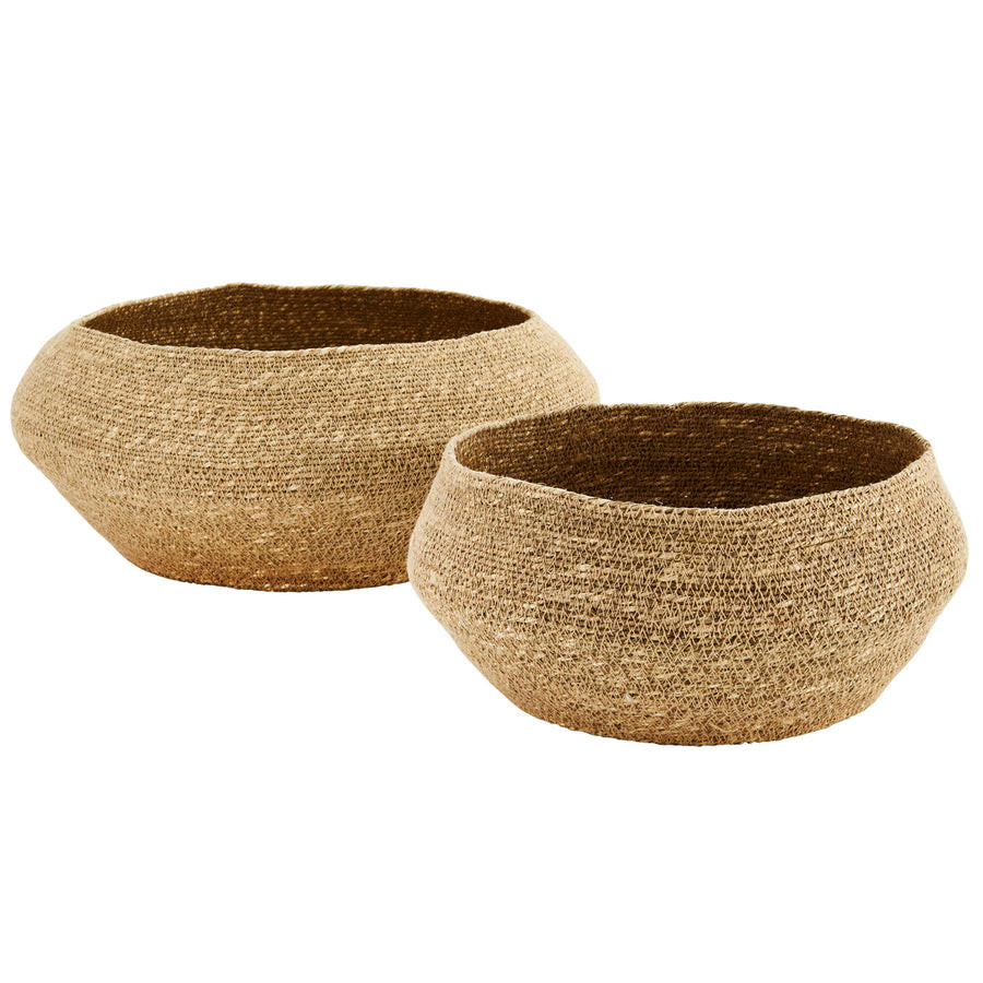 Bring natural warmth and effortless style to your home with this Set of Two Seagrass Baskets with Stitching. Handwoven by skilled artisans, each basket showcases the timeless beauty of natural seagrass fibers enhanced with intricate stitching details, adding a touch of texture and craftsmanship.