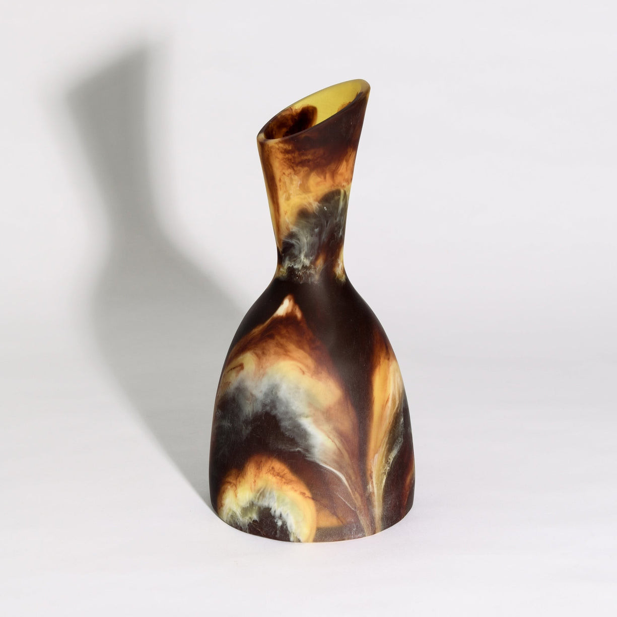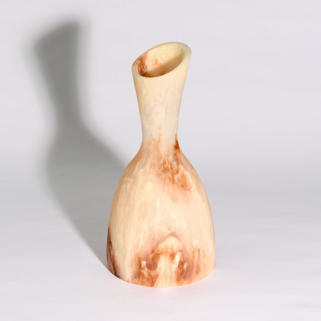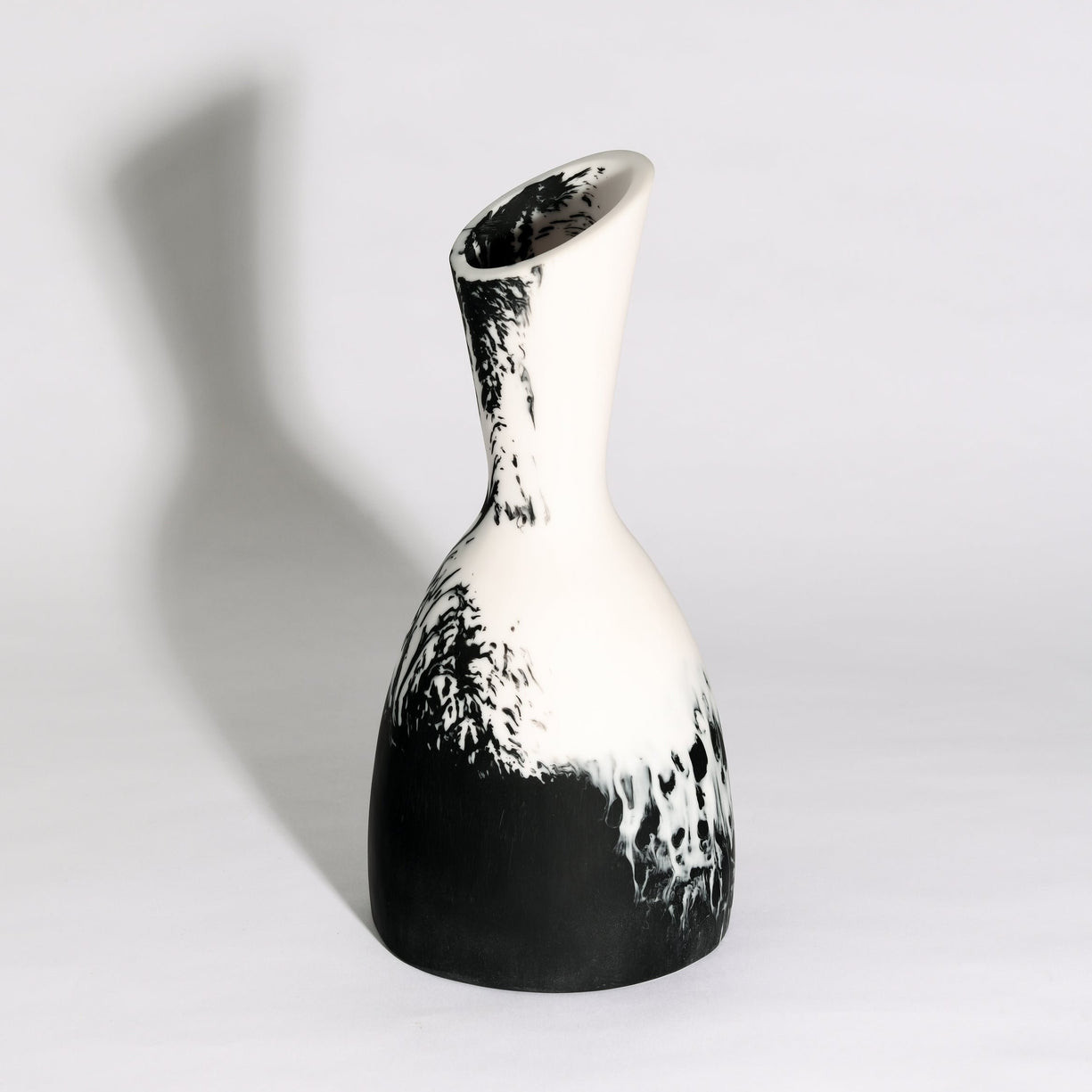 Its gracefully tapered silhouette rises into an asymmetrical, angled opening, adding a contemporary touch that makes it as much a piece of art as it is a functional vase. Perfect for displaying single-stem florals, dried arrangements, or standing alone as a statement accent, this vase effortlessly elevates console tables, shelves, and dining spaces.