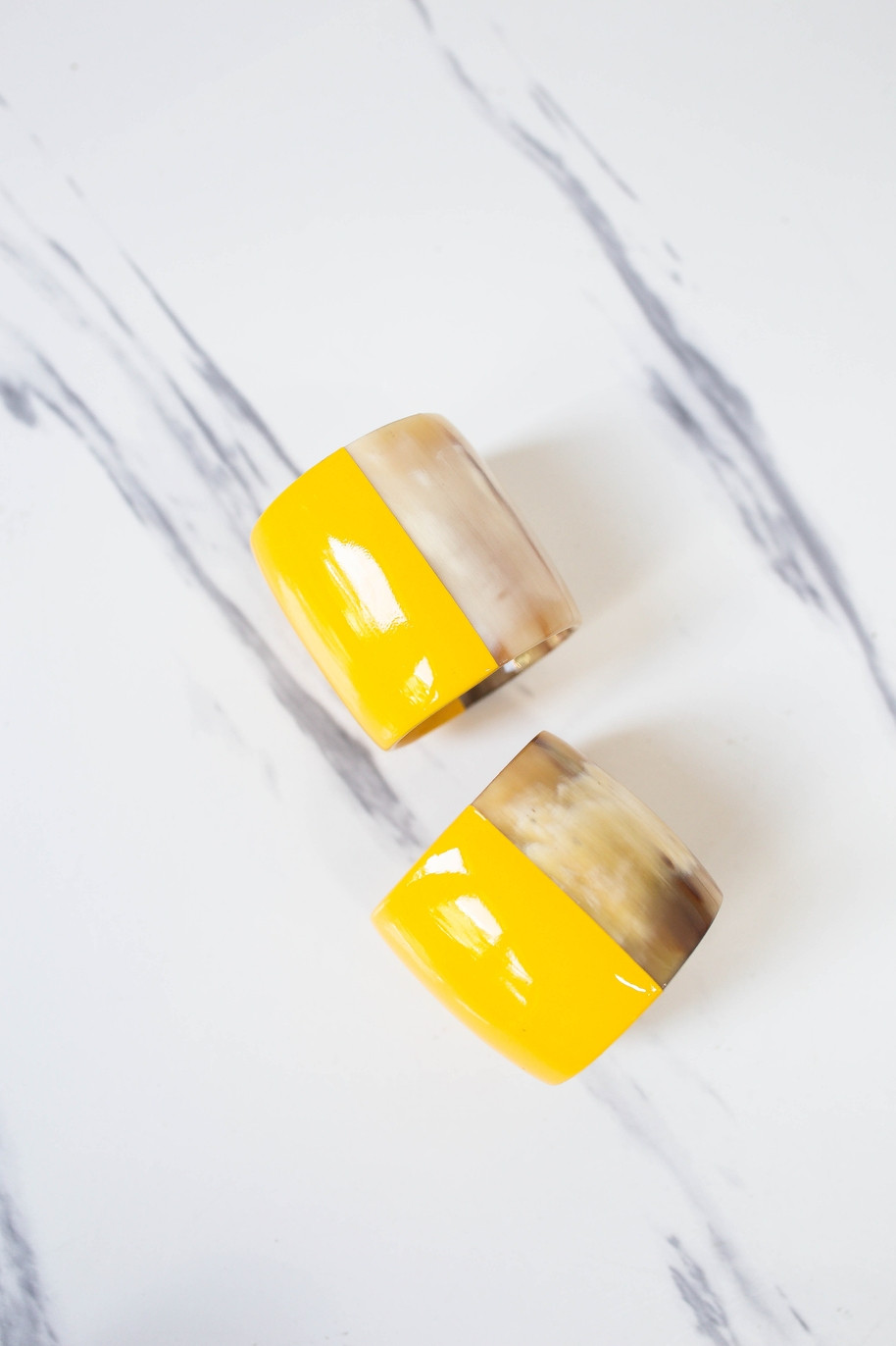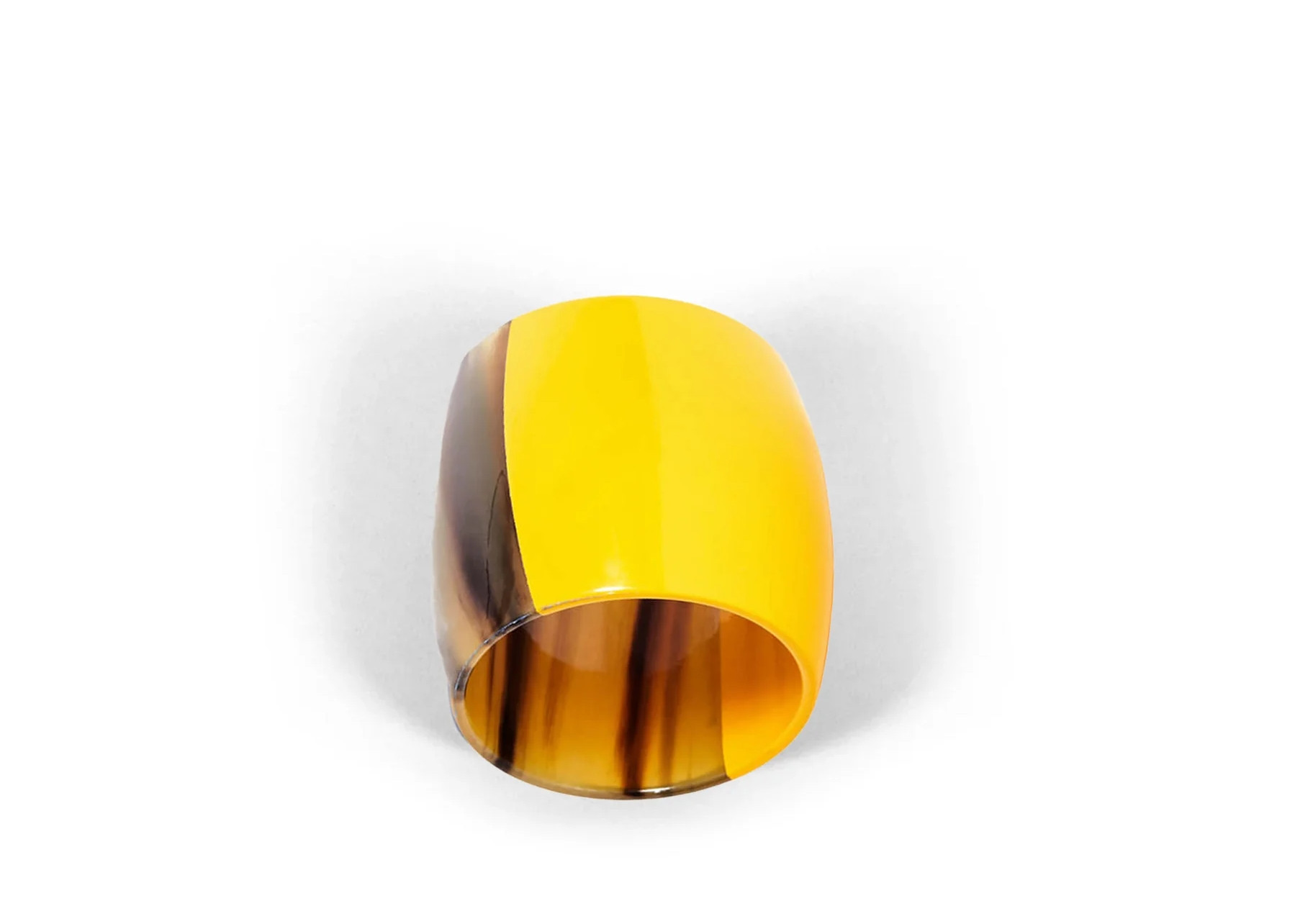 Striking the perfect balance between nature and refinement, this lacquered buffalo horn napkin ring brings quiet sophistication to your table. Handcrafted from ethically sourced buffalo horn and finished with a smooth, high-gloss lacquer, each ring features rich natural variations—ranging from smoky charcoal to golden honey and ivory streaks. The contrast between the organic material and polished finish creates a contemporary look rooted in tradition. Whether paired with crisp linens or layered into a curated tablescape, it offers a distinctive, elevated touch to any meal.
