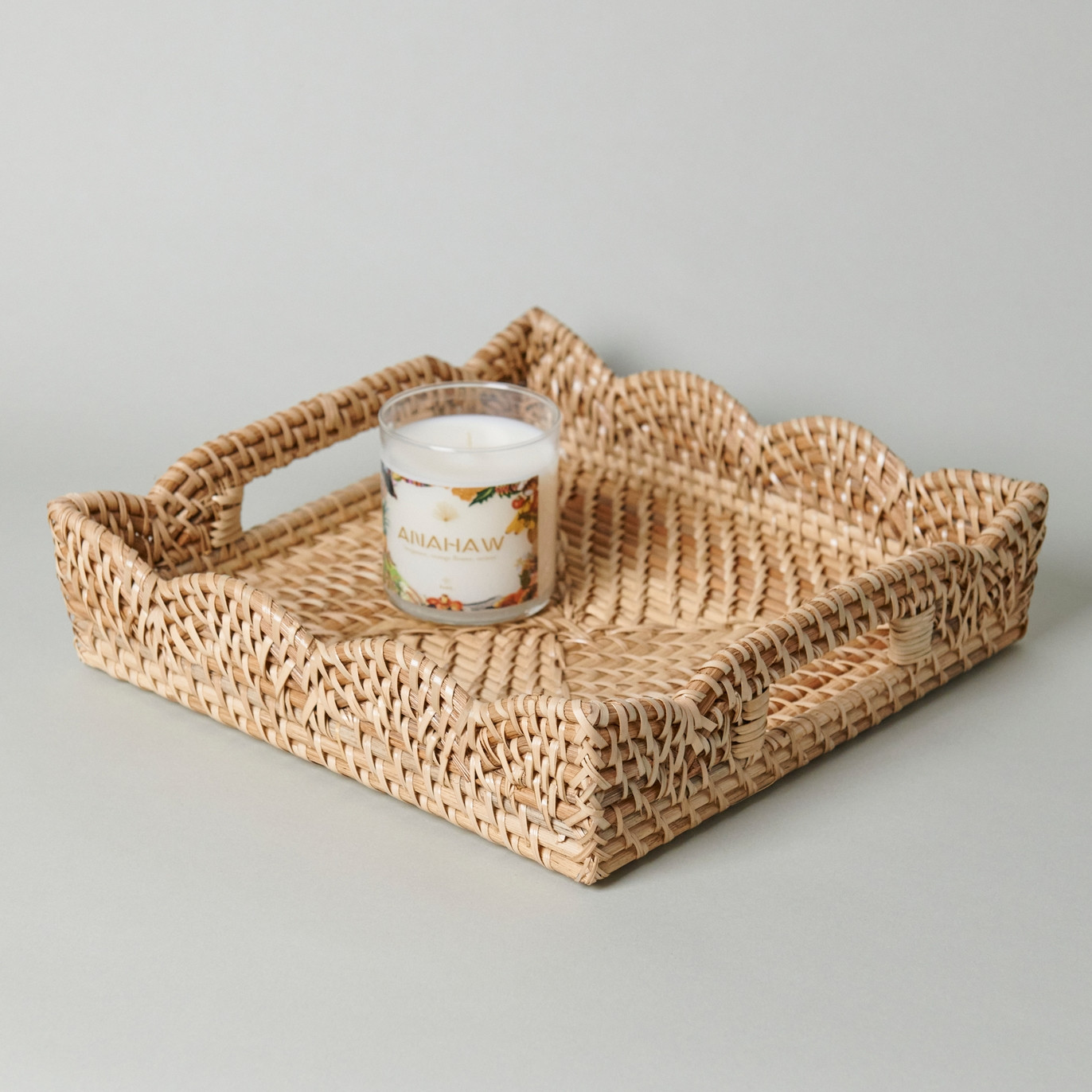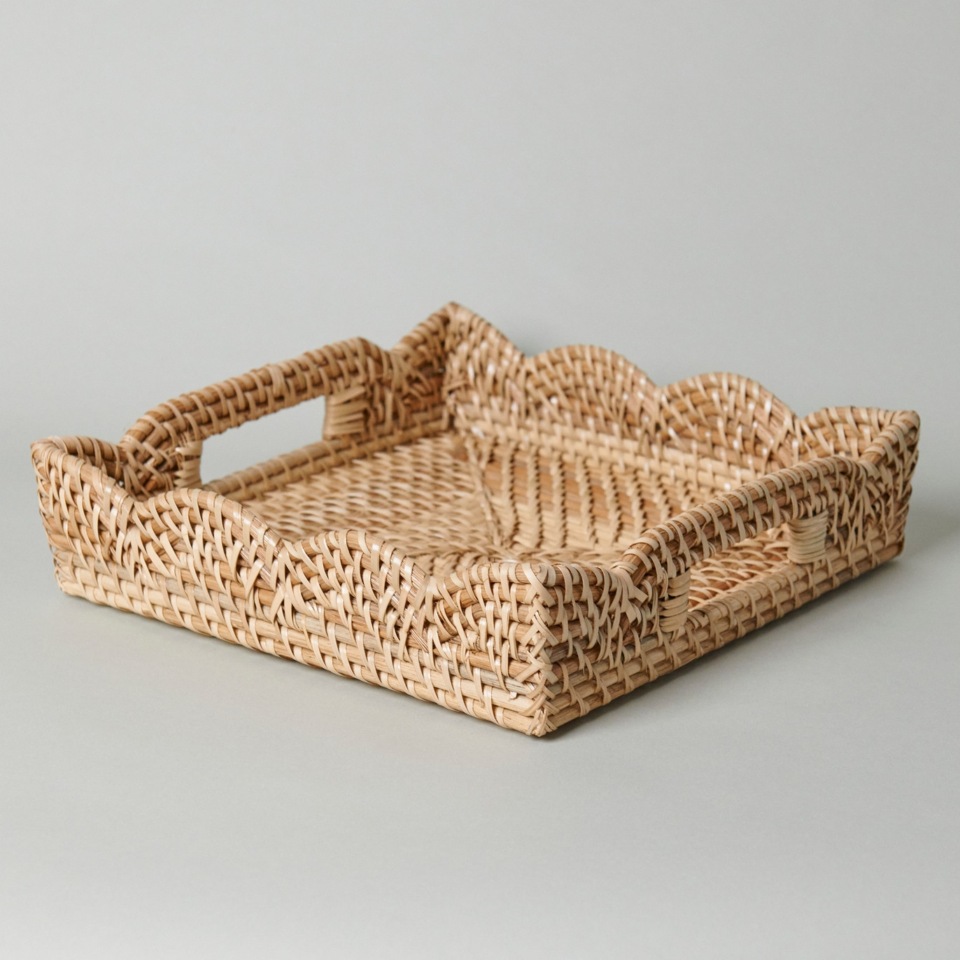 Infuse your home with organic charm and elegant craftsmanship with this handwoven rattan tray. Designed with a stylish scalloped edge and integrated handles, it brings both function and beauty to your space. Whether you’re serving breakfast in bed, styling your coffee table, or organizing entryway essentials, this tray adds a warm, natural touch to any surface. The tightly woven structure ensures durability, while the curved detailing offers a soft, decorative flair. Lightweight yet sturdy, it’s a versatile piece that complements bohemian, coastal, and modern decor styles alike.